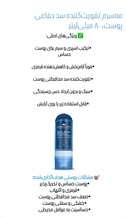 سرم اسپري تقويت كننده سد دفاعي پوست بيوبالانس: ٨٠ميلي ليت