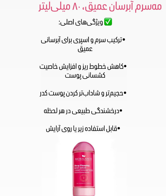 سرم اسپري ابرسان عميق پوست بيوبالانس: ٨٠ميلي ليتر