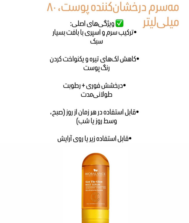 سرم اسپري درخشان كننده پوست بيوبالانس