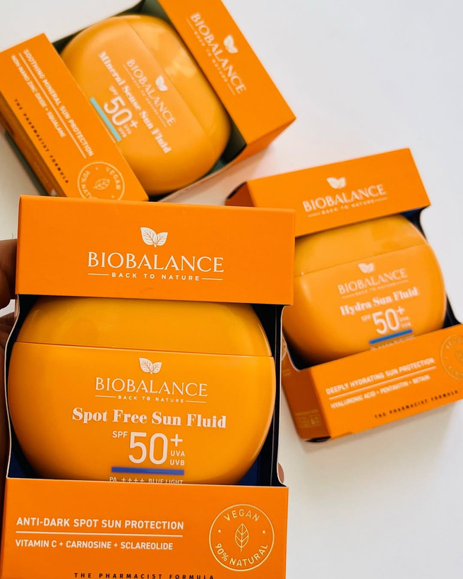 ضد آفتاب spot free sun fluid بیوبالانس حاوی ویتامین C درخشان کننده و ضد هایپرپیگمנטیشن کاملا نامرئی. غیر چرب و غیر چسبنده مناسب پوست چرب و مختلط مقاوم در برابر آب (۸۰ دقیقه) بدون دی اکسید تیتانیوم.